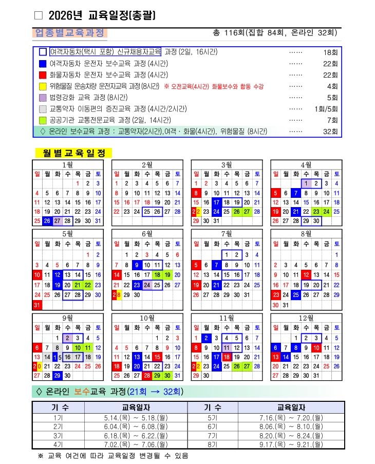 | 제목 | ★★ 2026년 운수종사자 교육 일정 알림 ★★ | ||