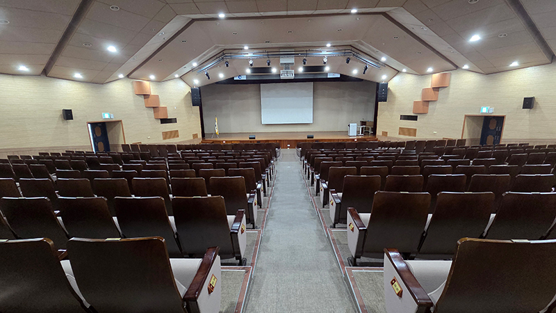 - 제공설비음향설비, 유무선마이크, 빔 프로젝터, 전자교탁, 무대조명, 냉난방완비